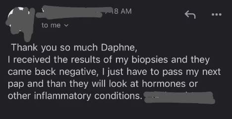 "I am so happy I found you Daphne. I was diagnosed 2 years ago and felt completely lost, I had no idea where to start, what to eat, what to drink, how to detox. I am feeling myself again and most of all I feel empowered.