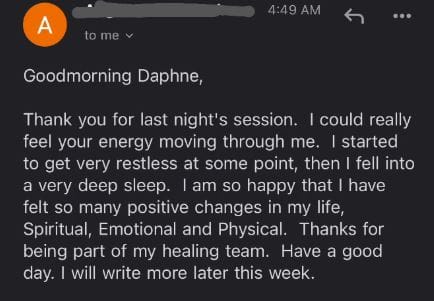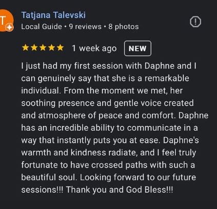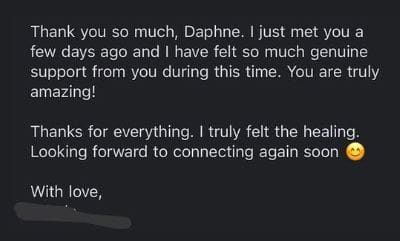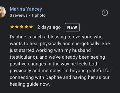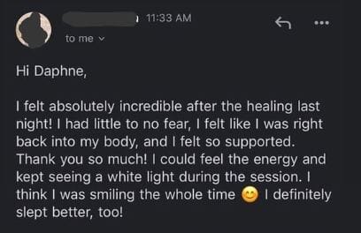 "Daphne helped me heal energetically and emotionally, which led to accelerated physical recovery after just one session. I couldn’t recommend her more highly."