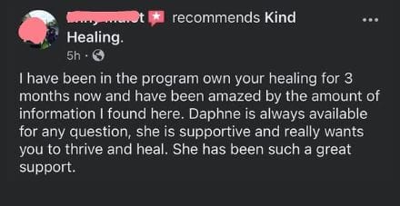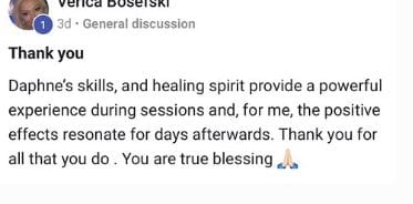 "I had breast cancer, and realized after working with Daphne, I was actually doing it all wrong lol. She taught me how to heal physically with natural products and to heal my traumas. It truly is all connected. Chronic pain in my hips and cramping also resolved. Highly recommend"